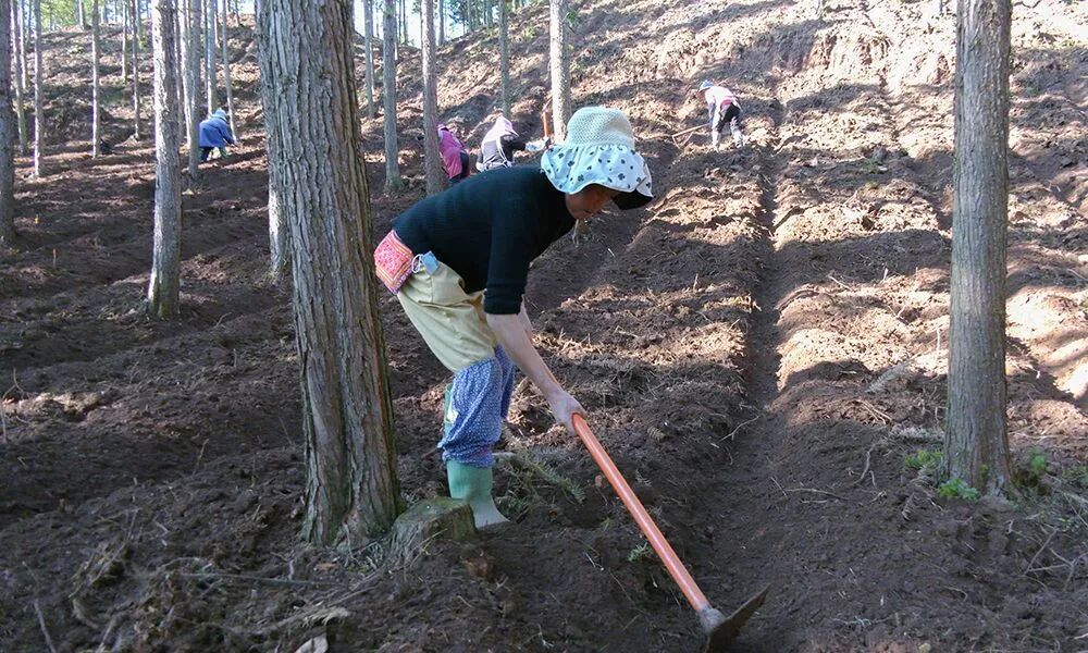 图为工人正在清理林地