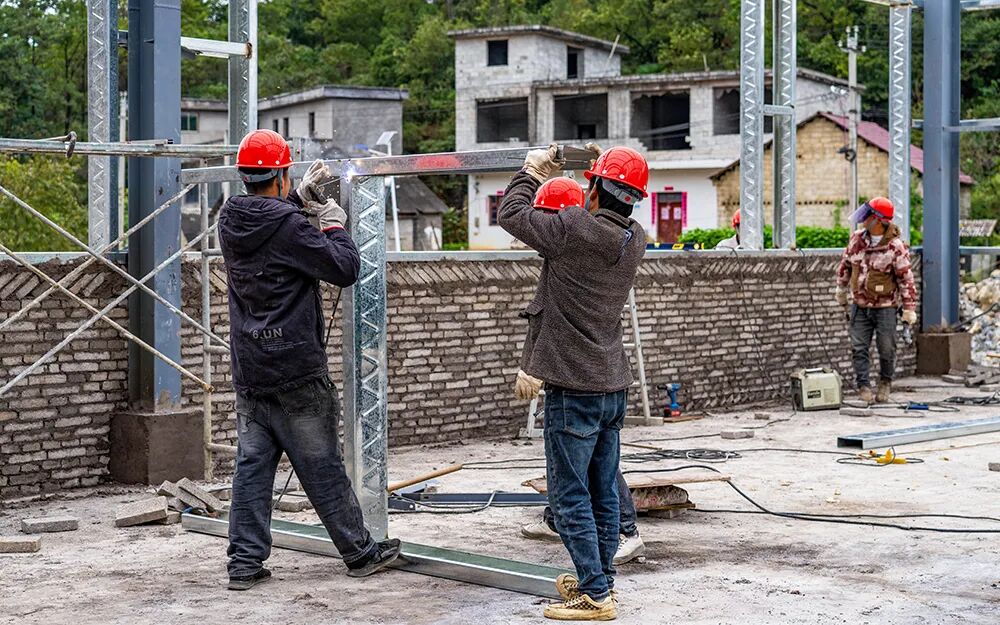 在海河村杨家山组,记者看到,建设现场机器轰鸣、焊花飞溅,工人们正忙着捆绑钢筋、吊装钢梁、焊接、浇筑混凝土,现场一片热火朝天的繁忙景象,建设中的农特产品储藏中心主体初见雏形,该项目建成后将显著延伸海河村农业产业链条,提升农特产品附加值,对促进农业增效、农民增收,推动乡村振兴和共同富裕具有重要意义。